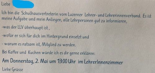 - "Lohnanstiegsgeschenk" (z.B. Schoggitaler und auf LLV hinweisen)