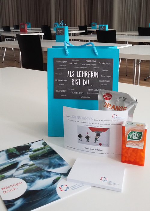 - Willkommensgeschenk an alle LP bei Schuljahresbeginn (inkl. Werbematerial)